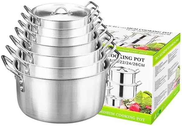 7x Aluminum Pots with Lids (14cm, 16cm, 18cm, 20cm, 22cm, 24cm)