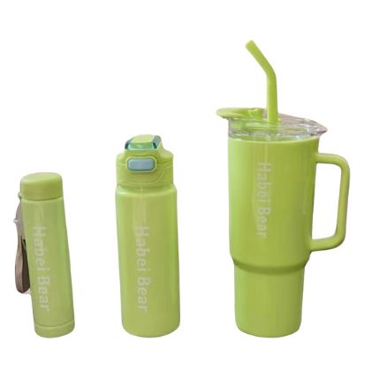 3 Pieces Green Lid Diamond Studded Tumbler Mug Bottle Set