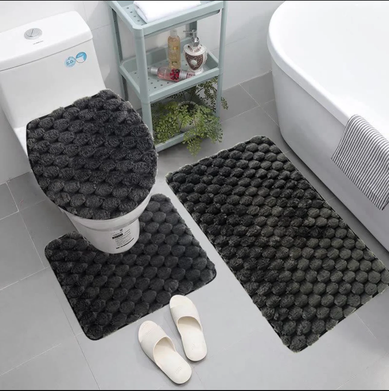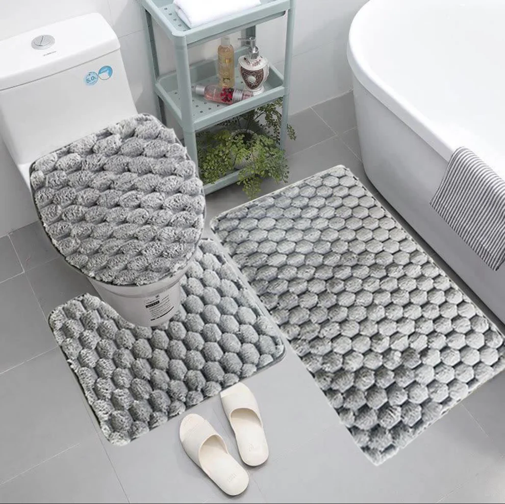 3-Pieces Embossed Bath Bathroom and Toilet Seat Cover Mat Set Non-Slip