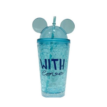 450ml Blue Plastic Double Wall Ice Cup Tumbler Mug Bottle with Straw