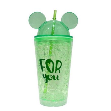 450ml Green Plastic Double Wall Ice Cup Tumbler Mug Bottle with Straw