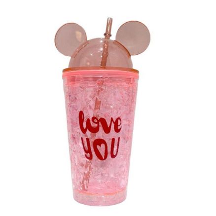 450ml Pink Plastic Double Wall Ice Cup Tumbler Mug Bottle with Straw
