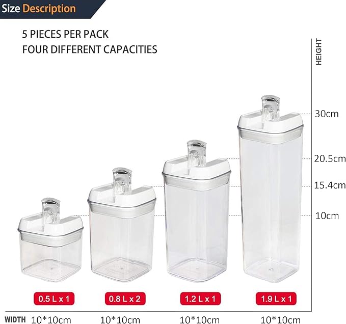 Set Includes: 1x 1.9L, 2x 1.2L, 2x 0.8L, 2x 0.5L containers