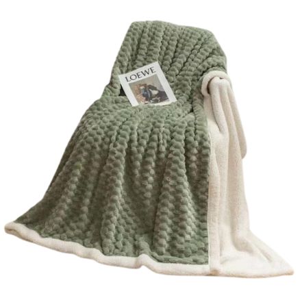 Ribbed Sherpa Flannel Blanket Fleece Throw Dark Green